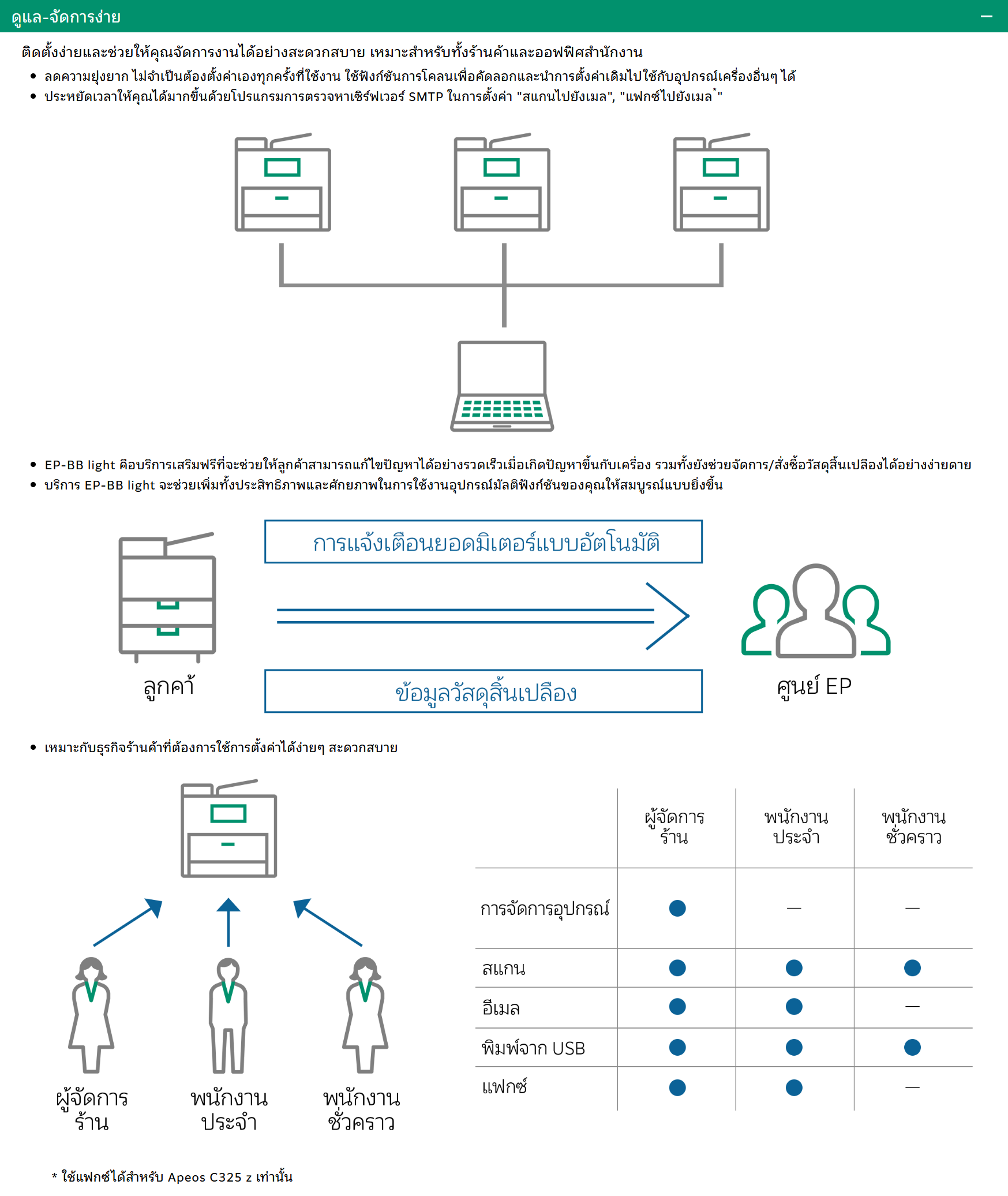 สแกนไปยัง PC, อีเมล, โฟลเดอร์ที่ใช้ร่วมกัน